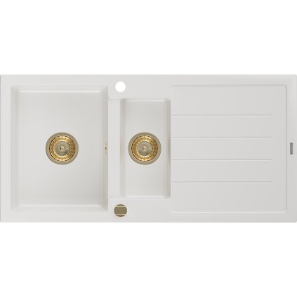 Mexen Andres, granitový drez 1000x500x200 mm, 1,5-komorový, biela so zlatým sifónom, 6515101510-20-G