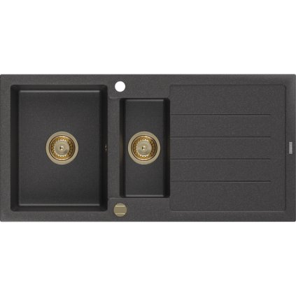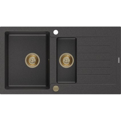 Mexen Carlos, granitový drez 582x475x177 mm, 1,5-komorový, čierna so zlatým sifónom, 6518581500-77-G