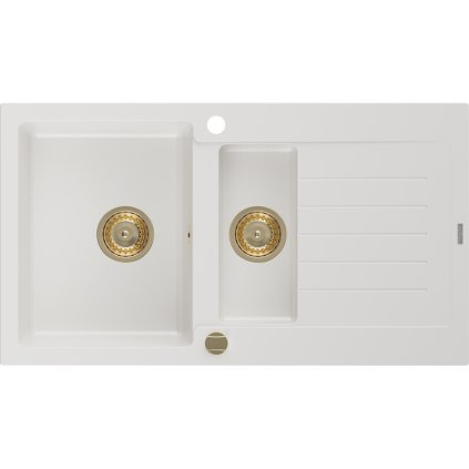 Mexen Matias - drez granitový 900x505x200 mm, 1,5-komorový, biela so zlatým sifónom, 6502901505-20-G