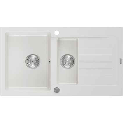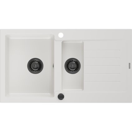 Mexen Andres, granitový drez 1000x500x200 mm, 1,5-komorový, biela s čiernym sifónom, 6515101510-20-B