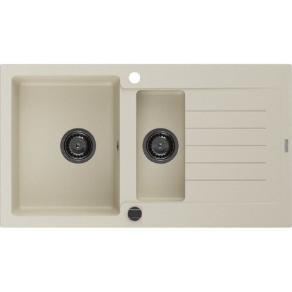 Mexen Carlos, granitový drez 582x475x177 mm, 1,5-komorový, béžová s čiernym sifónom, 6518581500-69-B
