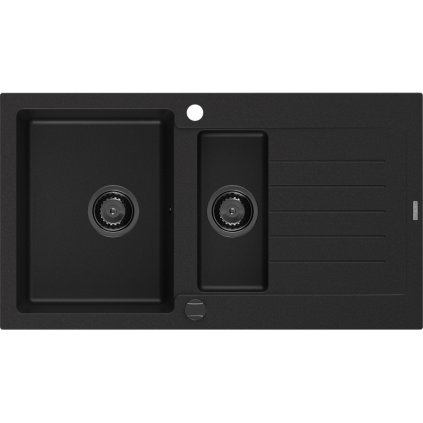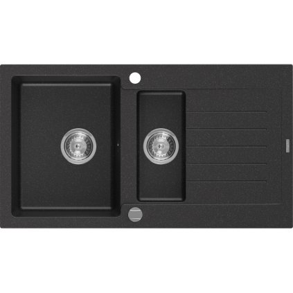 Mexen Carlos, granitový drez 582x475x177 mm, 1,5-komorový, čierna s čiernym sifónom, 6518581500-77-B