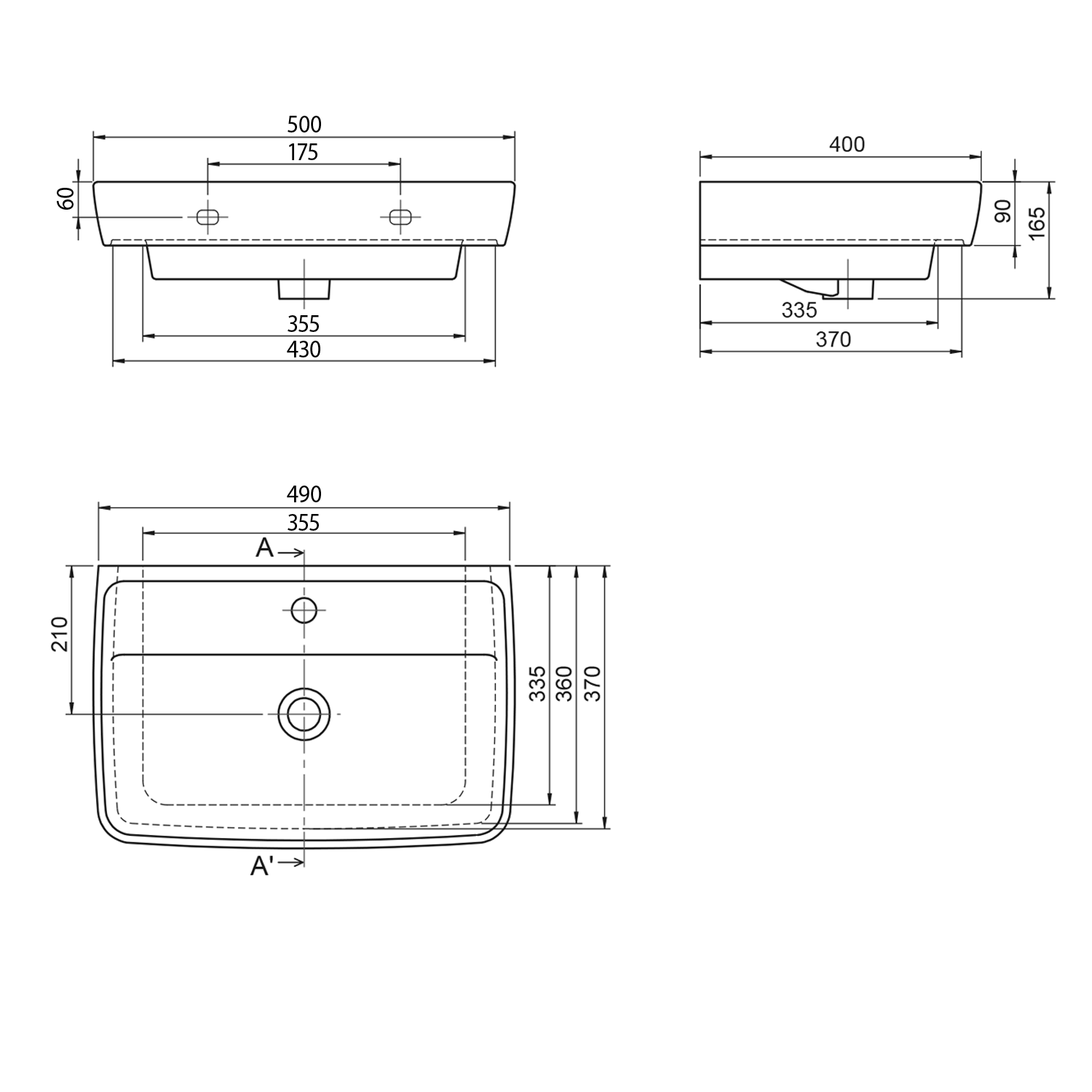 Umývadlo má šírku 500 mm, hĺbku 400 mm a výšku misy 165 mm — rozmery, ktoré pokrývajú väčšinu štandardných kúpeľňových skriniek šírky 50 cm. Hmotnosť 13,7 kg umožňuje manipuláciu bez špeciálneho vybavenia.