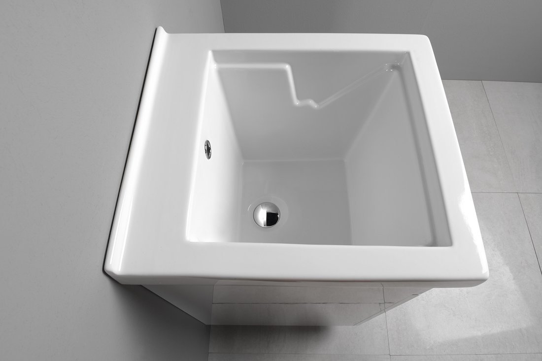 Neporézny glazovaný povrch sa ľahko čistí a nezachytáva nečistoty ani usadeniny. Výlevka je vybavená štandardným prepadom — pri plnení vedier ochrana pred pretečením funguje automaticky.