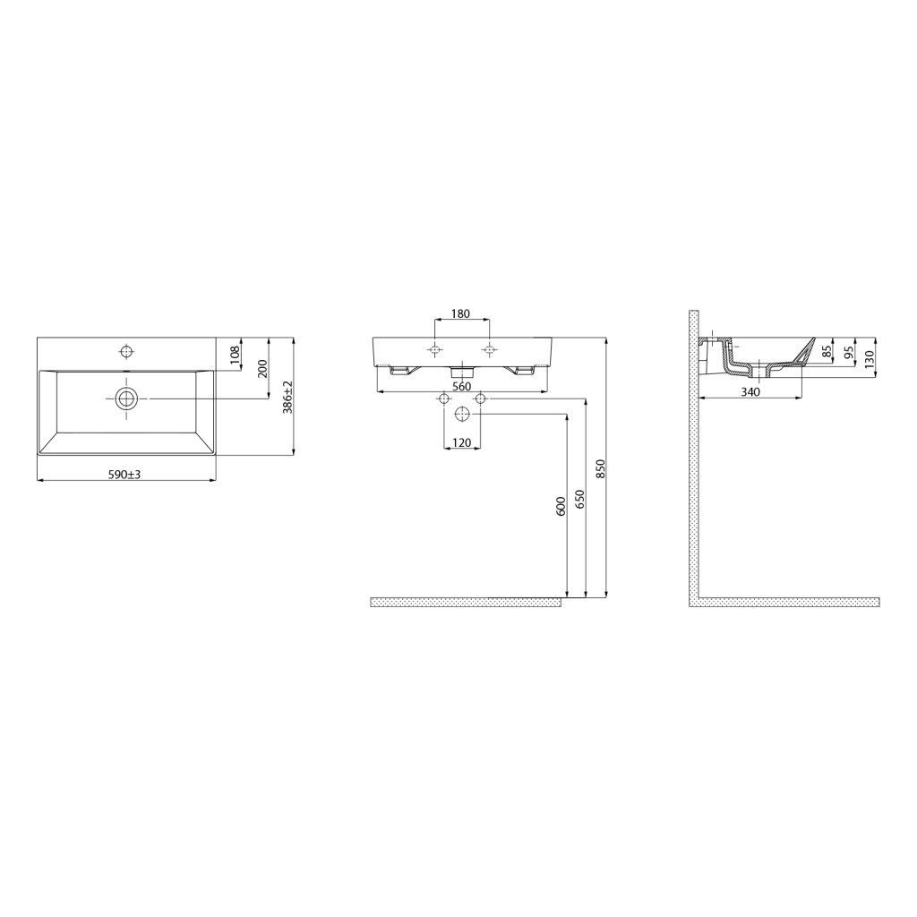 Aqualine, ORION keramické umývadlo 59x38,6cm, bielá, 27060