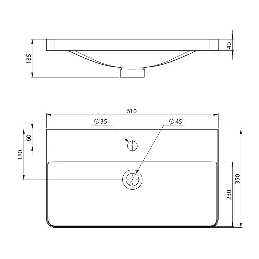 Aqualine, SEN nábytkové umývadlo, liaty mramor, 61x35cm, biela, SN610