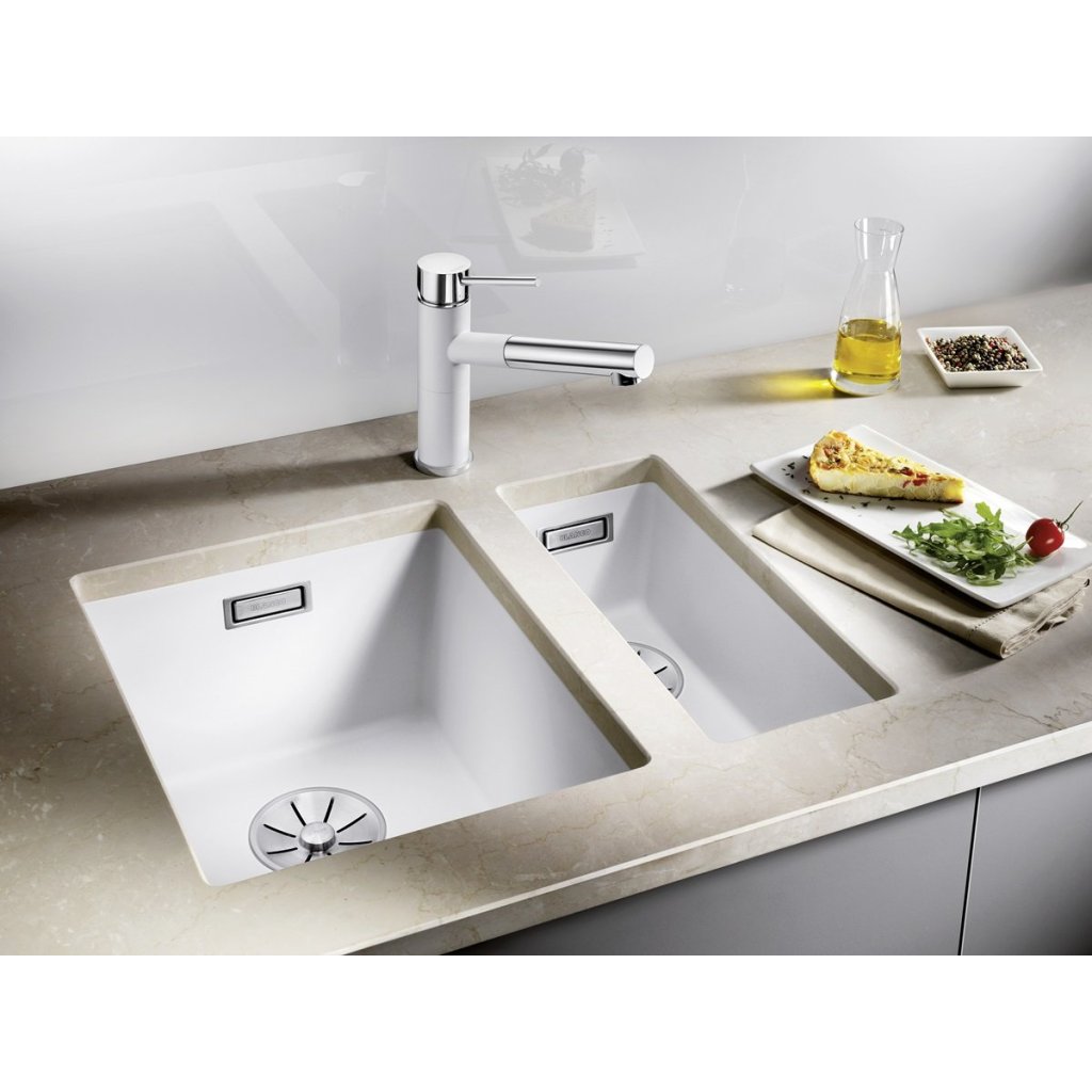 Drez Blanco SUBLINE 320-U je elegantný jedno komorový drez s rozmermi 350 x 460 mm. Jeho priestranná vanička o rozmeroch 320 x 400 mm s hĺbkou 190 mm poskytuje dostatok praktického priestoru aj pre väčšie riady. Vďaka svojím rozmerom je vhodný aj do menších priestorov. Je vhodný na montáž pod pracovnú dosku so šírkou spodnej skrinky minimálne 400 mm. Vďaka umiestnení výpuste sa drez radí medzi Špecifické - orientácia drezu je fixne daná. Určite oceníte jednoduchú údržbu drezu a jeho vysokú odolnosť voči poškodeniam. Granit sa taktiež vyznačuje svojou farebnou stálosťou a odolnosťou voči teplotám. Stačí si už len vybrať z našej širokej ponuky farebných prevedení.