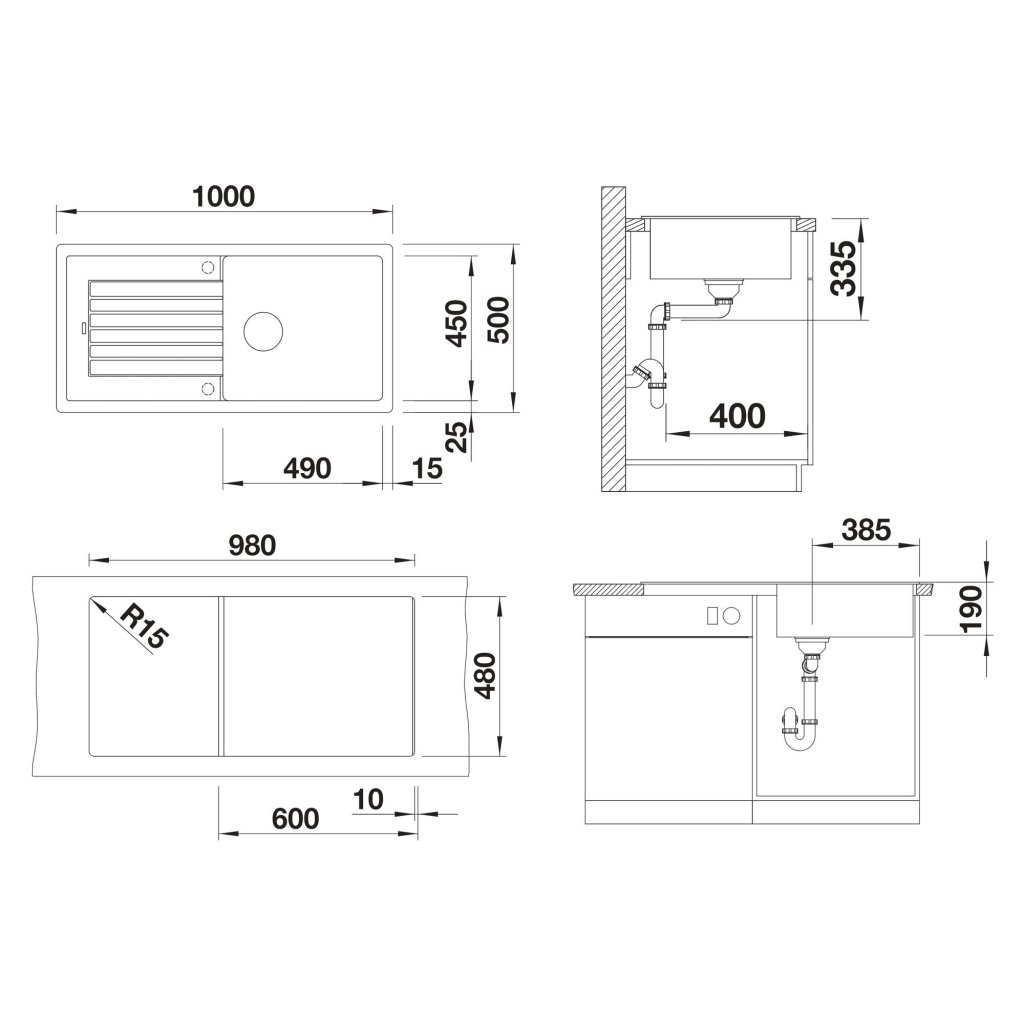 - Rozmer výrezu: 980 x 480 mm R15 mm