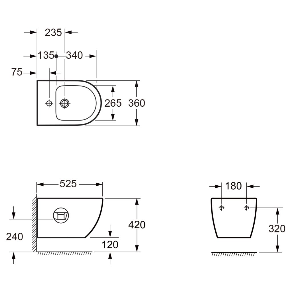 Bruckner, FULDA závesný bidet, 36x52cm, biela, 201.611.4