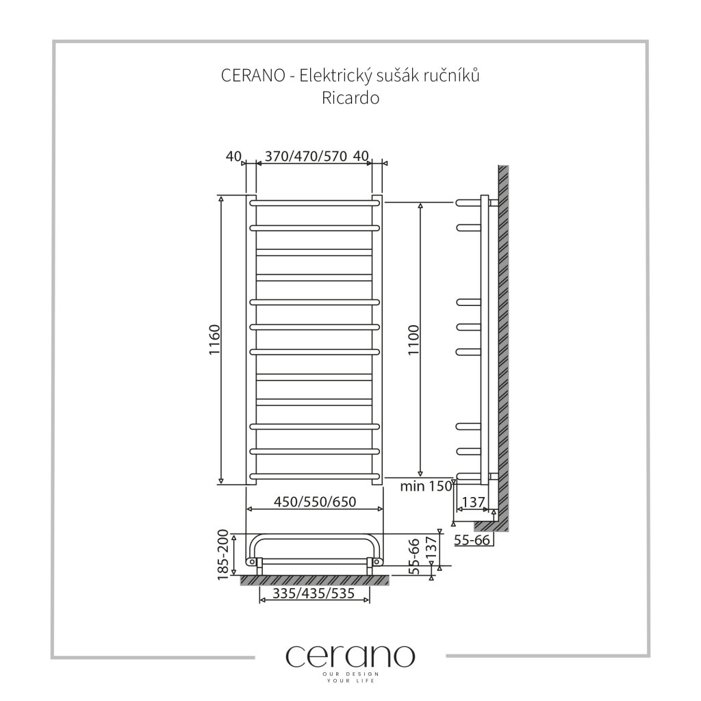 Cerano Ricardo, elektrický sušiak uterákov s displejom 1160x550 mm, 229W, biela, CER-LIV-W-ED-12-55