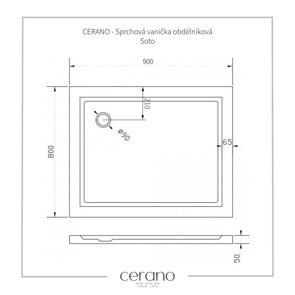 Cerano Soto, obdĺžniková akrytálová sprchová vanička 90x80x5 cm, biela, CER-CER-425551