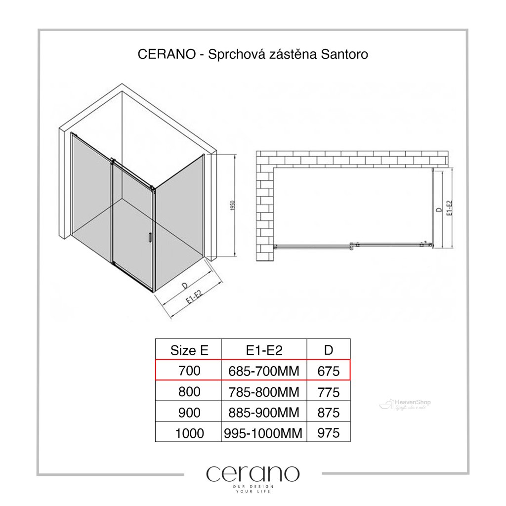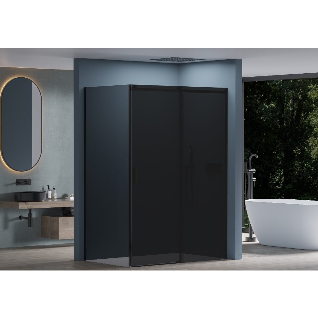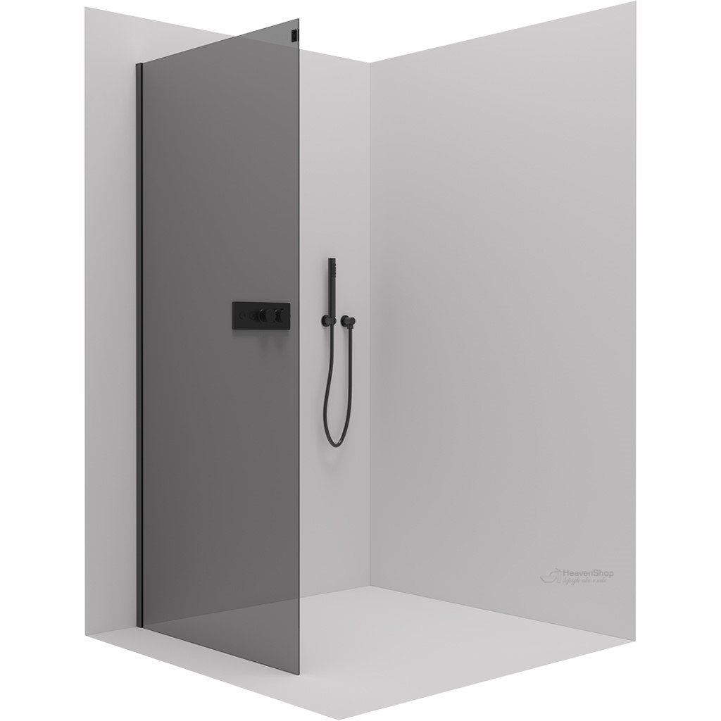 Cerano Santoro, sprchová stena 70x195 cm pre sprchové dvere série Santoro, 6mm šedé sklo, čierny profil, CER-CER-424996