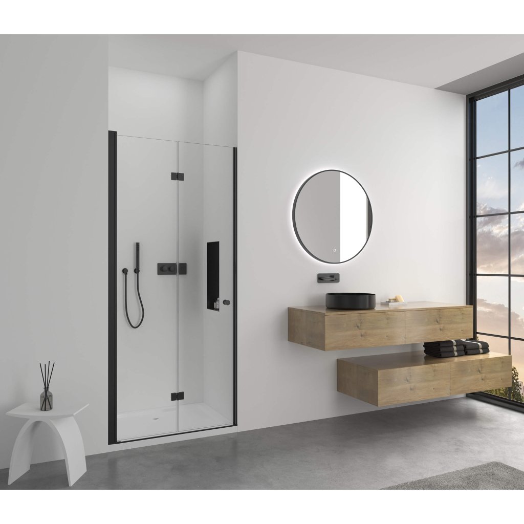 Vždy však treba dbať na správne meranie a montáž, aby stabilita dverí bola čo najvyššia. Dvere disponujú čiernymi pántami a minimalistickou rukoväťou pre ľahké otvorenie. Pôsobí tak veľmi designovo a hodí sa do všetkých typov kúpeľní.