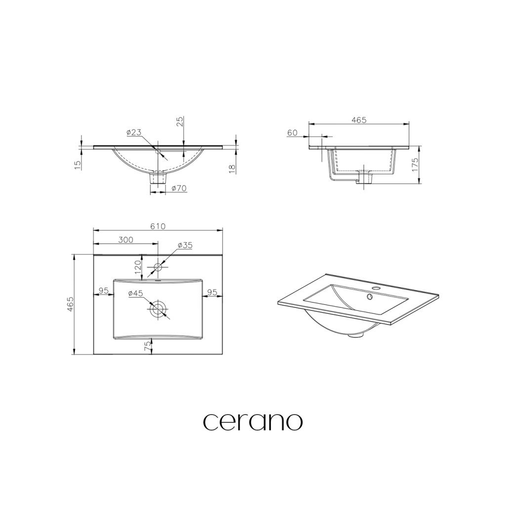CERANO - Umývadlo keramické Todo - nábytkové - biela lesklá - 61x46,5 cm, CER-431593