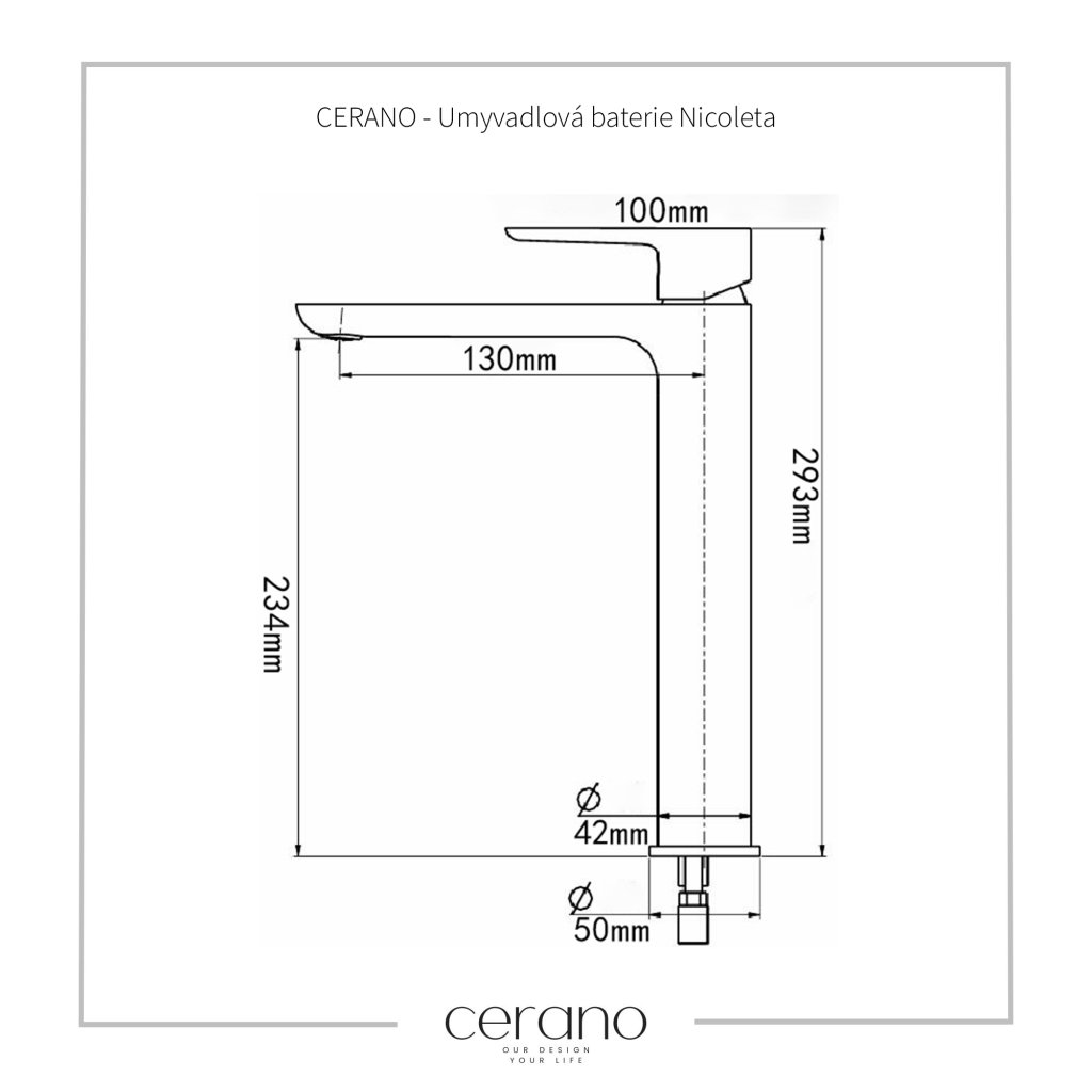 Cerano Nicoleta, vysoká umývadlová batéria h-293, čierna matná, CER-CER-440177