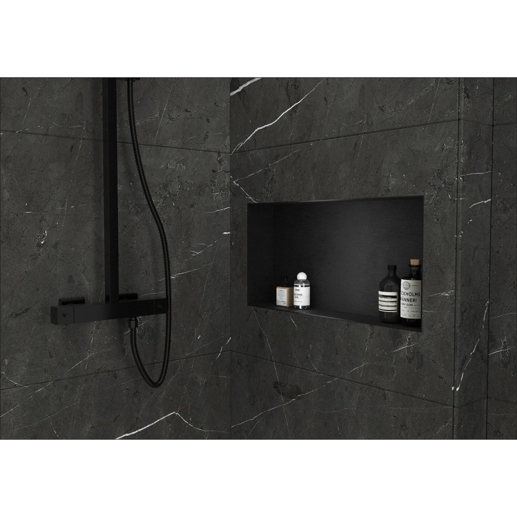 Tieto zápustné police sú ideálnou alternatívou k tradičným kúpeľňovým košom, ktoré bývajú často vyrobené z nekvalitných materiálov, nie sú estetické a sú obmedzené priestorovo. Navyše mávajú tendenciu rýchlo korodovať. police sú vyrobené z kvalitnej nerezovej ocele v čiernej farbe, ktorá dodáva kúpeľniam eleganciu a pýši sa dlhou životnosťou, pretože odoláva vysokej vlhkosti.