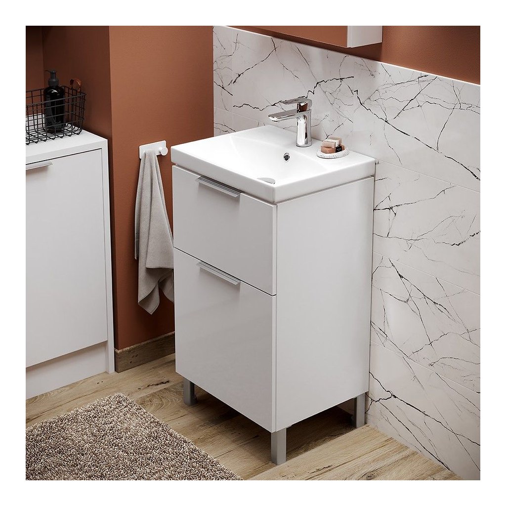 Skrinka sa predáva s keramickým umývadlom. Odtoková súprava a batéria nie sú súčasťou balenia.