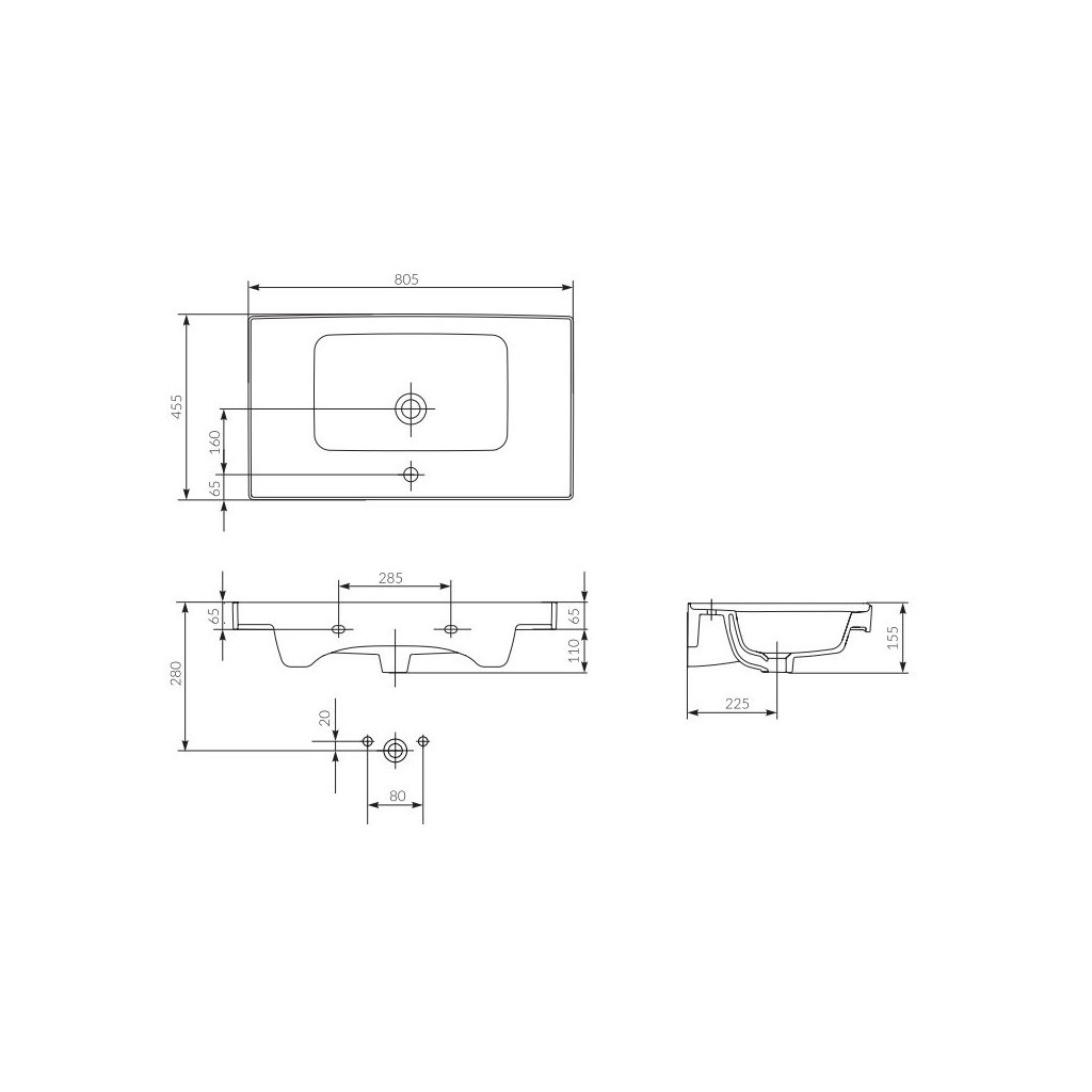 - Rozmery umývadla: 80,5 x 45,5 cm