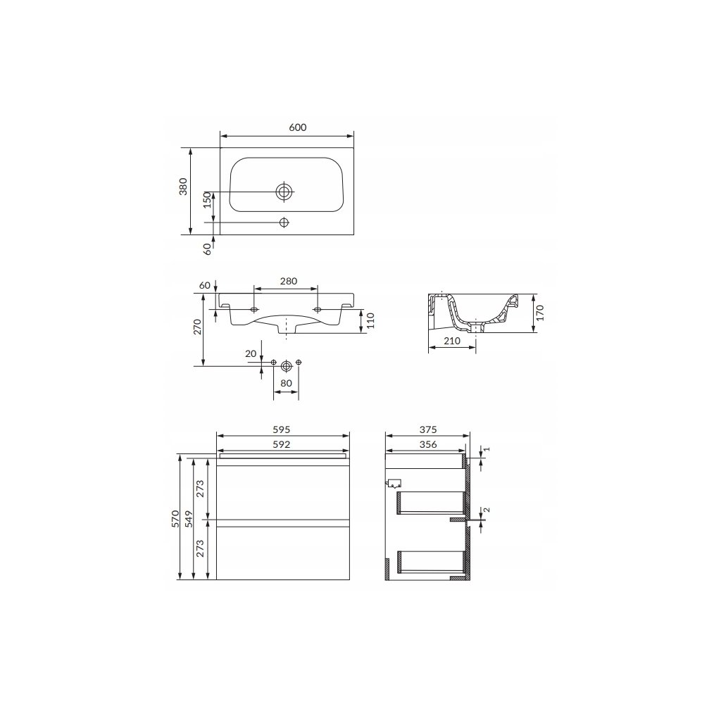 Súprava obsahuje umývadlovú skrinku MODUO SLIM v prevedení pre vlastnú montáž a keramické umývadlo MODUO SLIM 60. Vďaka zníženej hĺbke je možné súpravu namontovať aj v úzkych miestnostiach. Predná strana skrinky je vyrobená z MDF, lakovaná v antracitovej farbe s matným povrchom. Skrinka má pohodlné, frézované rukoväte a systém tichého zatvárania.