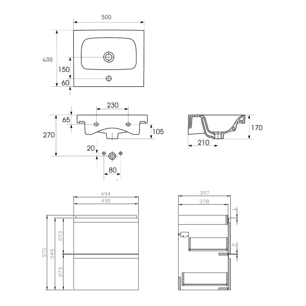 Sada pozostávajúca zo skrinky a umývadla. Sifón a batéria nie sú súčasťou balenia.