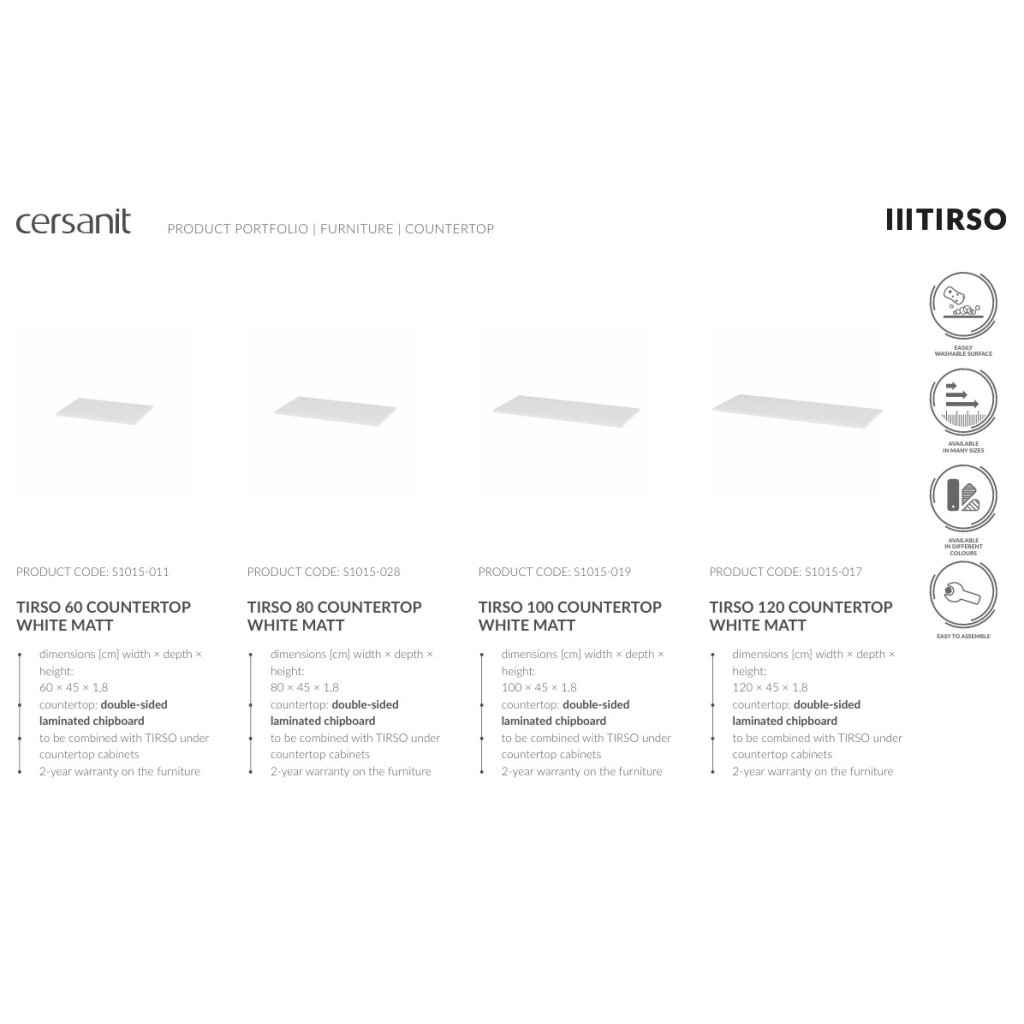Cersanit Tirso, doska na kúpeľňovú skrinku 600x450x18 mm, biela matná, S1015-011