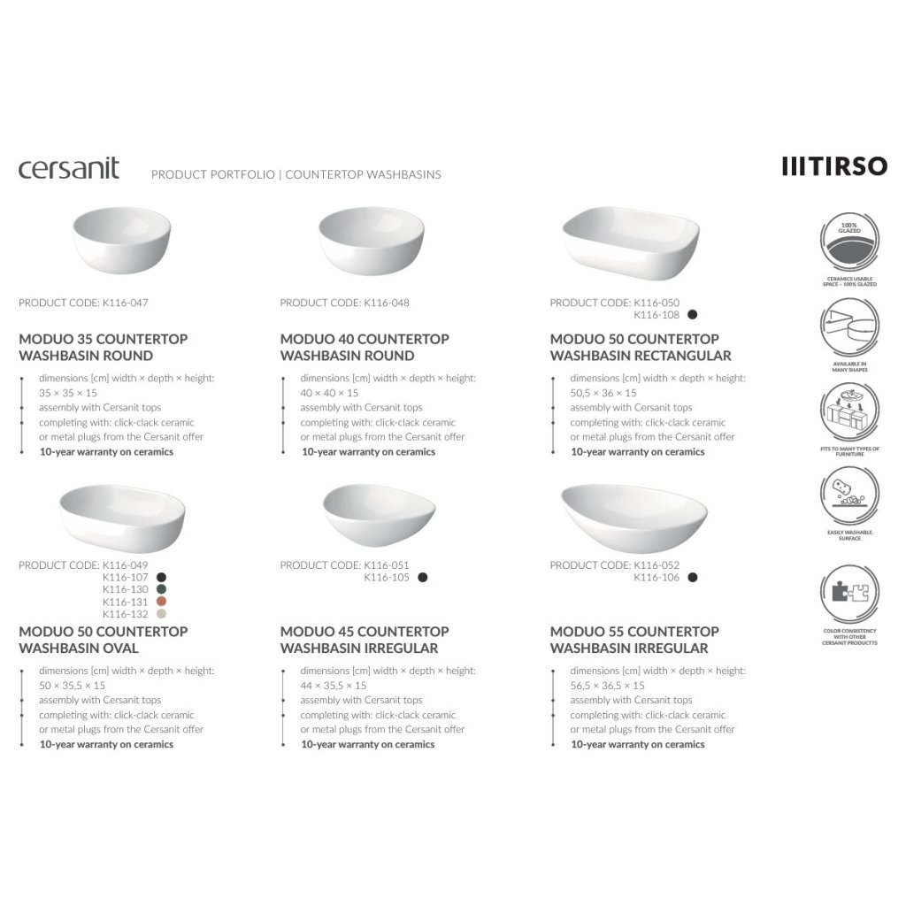 Cersanit je známa a rešpektovaná značka kúpeľňového vybavenia nielen v Poľsku, ale aj v zahraničí. Ako jediná ponúka svojim zákazníkom taký široký sortiment a hotové, komplexné riešenia pre kúpeľne, ktoré kombinujú funkčnosť, pohodlie, vysokú kvalitu a dobrý štýl. Cersanit využíva najnovšie technologické poznatky a premieňa ich na inovatívne riešenia, ktoré poskytuje svojim spotrebiteľom. V rámci ponúkaných kolekcií predstavuje množstvo funkčných nápadov, ktoré uľahčujú čistotu a zabezpečujú hygienu na najvyššej úrovni. Vystupuje ako poradca, ktorý navrhuje, ako optimálne zariadiť interiér a navrhuje riešenia, ktoré budú priateľské vo fáze zariaďovania aj používania.