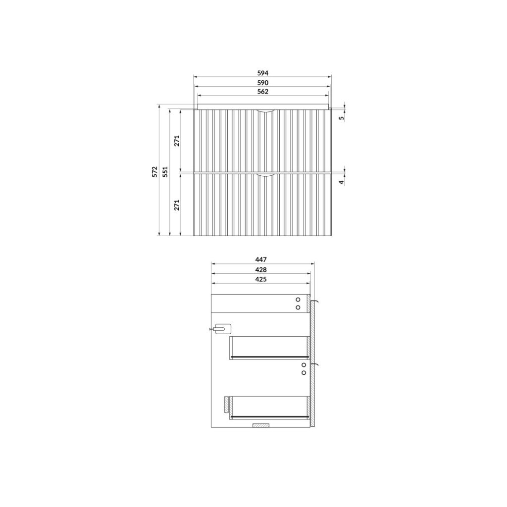 Skrinka je vybavená dvoma priestrannými zásuvkami s plným dnom, ktoré poskytujú viac úložného priestoru pre rôzne kúpeľňové doplnky - preto odporúčame použiť priestorovo úsporný sifón. Mechanizmus mäkkého zatvárania zaručuje tiché a hladké zatváranie, čo zvyšuje komfort používania. Predná strana skrinky je vyrobená z ryhovanej MDF dosky fóliovanej v matnom prevedení, čo jej dodáva jemnú textúru a elegantný vzhľad. Telo skrinky je laminovaná drevotrieska, tiež v matnom prevedení. Výrobok sa perfektne hodí k nábytkovým umývadlám, zapusteným do pracovnej dosky, ako aj k umývadlám na dosku, takže sa dá ľahko prispôsobiť rôznym kúpeľňovým usporiadaniam. Sada navyše obsahuje dve sady kovových rukovätí (čierna a chrómová), ktoré vám umožňujú prispôsobiť vzhľad skrinky preferenciám používateľa. Skrinka je určená na vlastnú montáž, čo umožňuje jednoduchú personalizáciu a prispôsobenie.