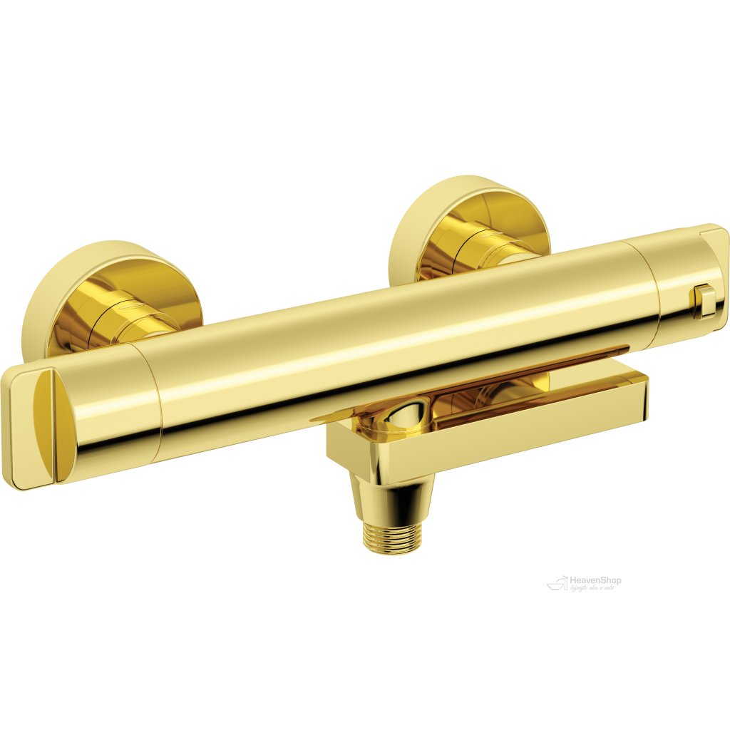 Termostatická vaňová batéria je vyrobená z najkvalitnejšej mosadze. Skladací výtok výrazne zvyšuje pohodlie pri kúpaní a zároveň funguje ako prepínač prúdu medzi výlevkou batérie a sprchovým výtokom. Výrobok je vybavený pohodlným teplotným zámkom 38°C, ktorý zabraňuje popáleniu. Termostatická batéria má navyše extrémne ergonomické rukoväte, ktoré zaručujú bezproblémovú reguláciu vodného prúdu. Je to model, ktorý navrhla dizajnérka Katarzyna Łogwinienko a ktorý kombinuje jedinečný dizajn s funkčnosťou. Zlatá povrchová úprava batérie dodá kúpeľni jedinečný charakter.