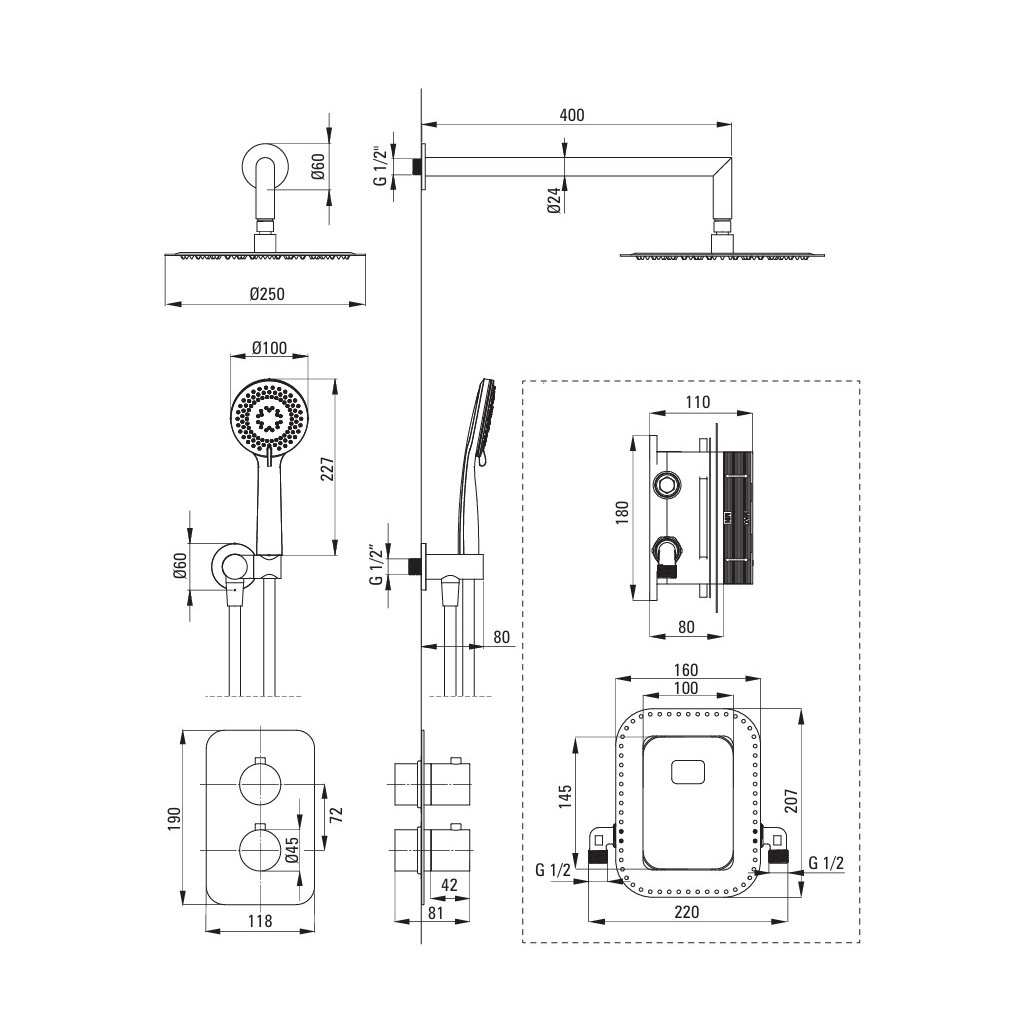 - Typ: podomietková termostatická sprchová zostava + BOX