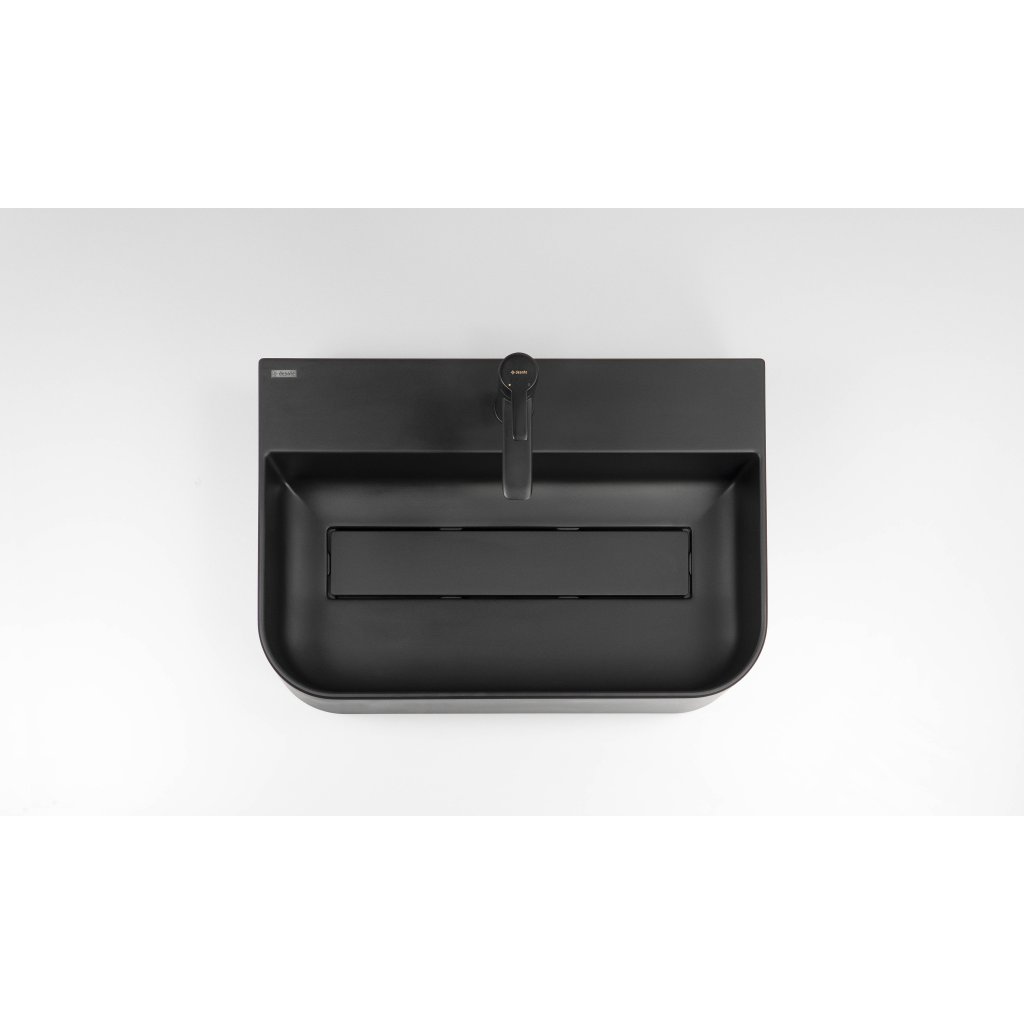 Granitové umývadlo s čiernou prepadovou mriežkou sa vyznačuje moderným a elegantným dizajnom. Na prednej strane má zaoblené hrany, čo mu dodáva mäkký, estetický vzhľad a zvyšuje komfort používania. Je vyrobený zo žuly Deante, je odolný voči nárazom, vysokým teplotám, zmene farby a tepelnému šoku. Vďaka svojim hydrofóbnym vlastnostiam odpudzuje molekuly vody, čo uľahčuje udržiavanie čistoty. Povrch umývadla je obohatený o ióny striebra, ktoré poskytujú antiseptický účinok. Žulová prepadová mriežka, presne zladená s umývadlom, zdôrazňuje eleganciu a konzistenciu celej formy.
