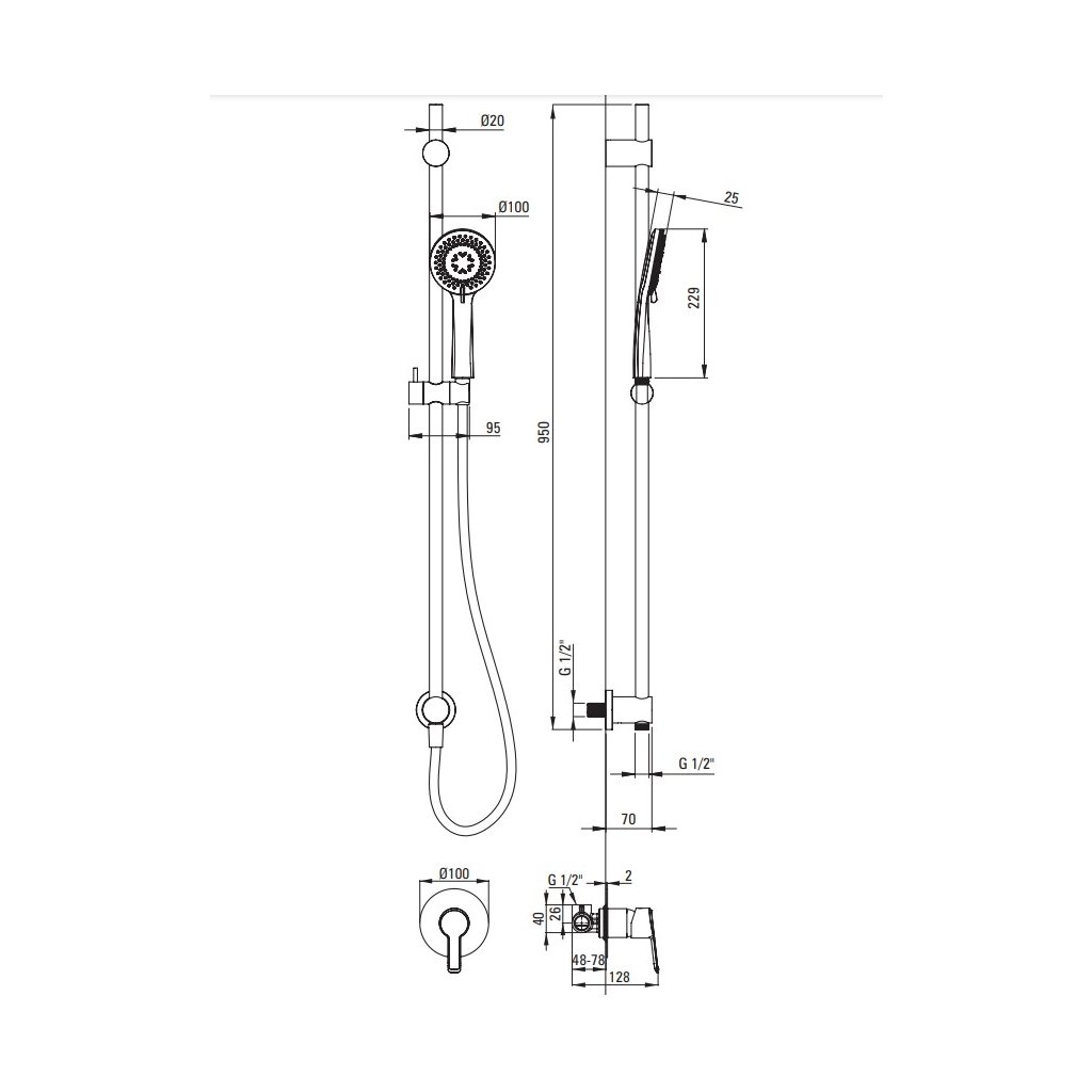 - 3-funkčná ručná sprcha