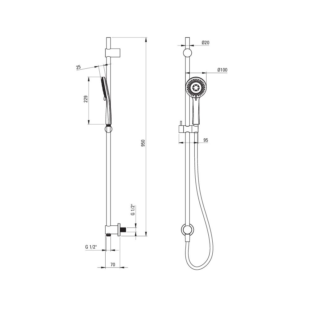 - Dĺžka stĺpu: 950 mm