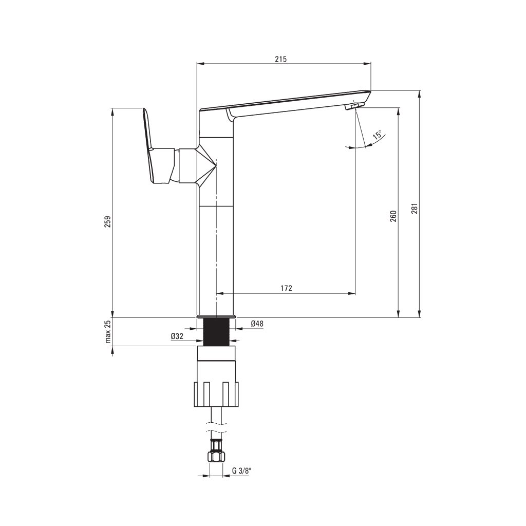 - Typ: vysoká umývadlová batéria s ECO perlátorom 4,5 l/min