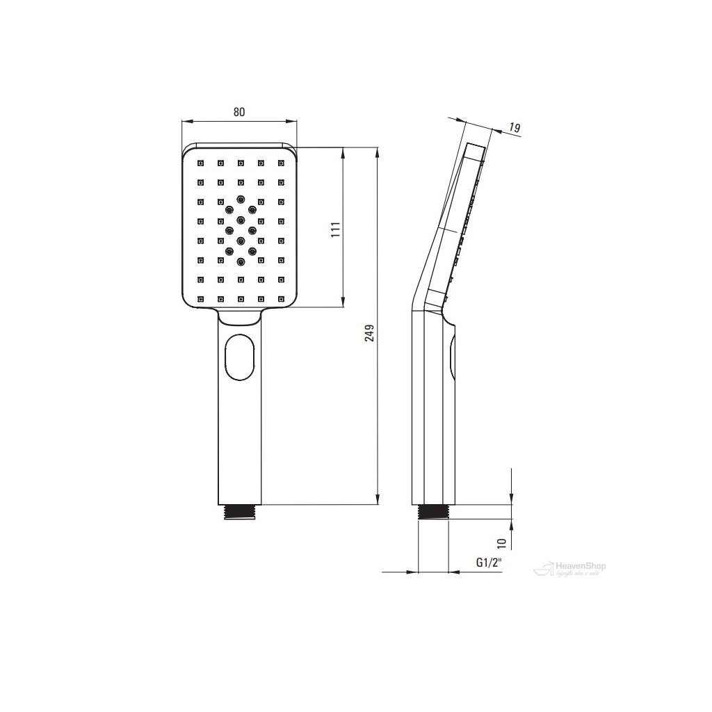 - Tvar hornej hlavovej sprchy: hranatý