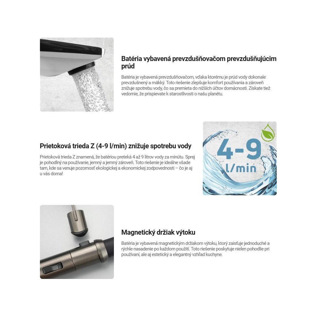 - Magnetický držiak výtokového ramena pre praktické používanie v kuchyni