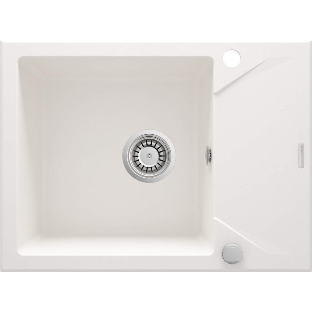 Deante Evora, granitový drez na dosku 590x440x193 mm Z/KO, 3,5" + priestorovo úsporný sifón, 1-komorový, biela, ZQJ_A11A