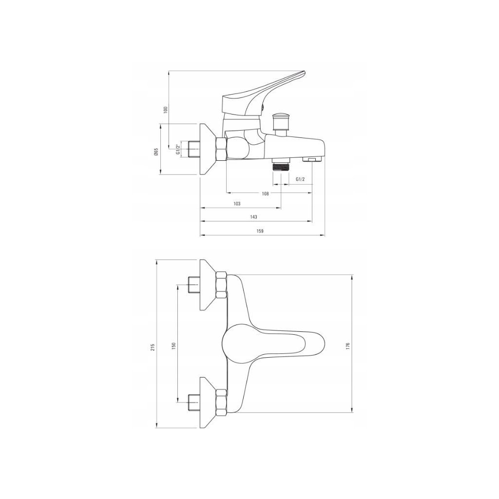 Deante Joko, nástenná vaňová batéria 150mm bez sprchového príslušenstva, chrómová, BOJ_010M