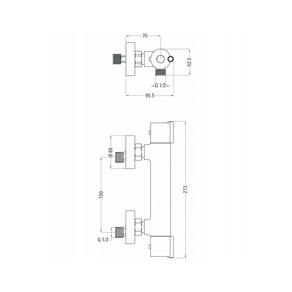 Deante Joko, termostatická sprchová batéria 150mm so spodným pripojením, chrómová, BOJ_04BT