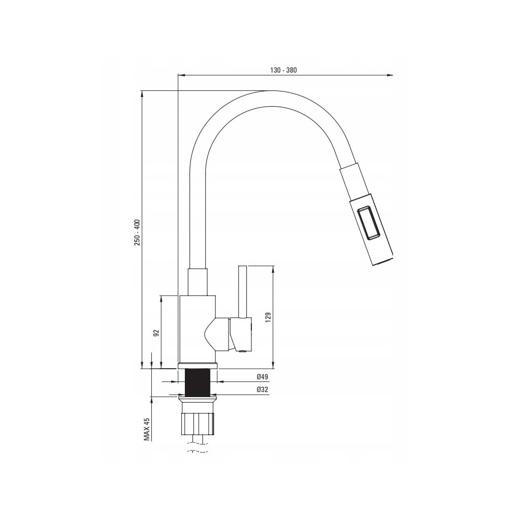 - Typ: páková drezová batéria so silikónovým ramenom a spŕškou