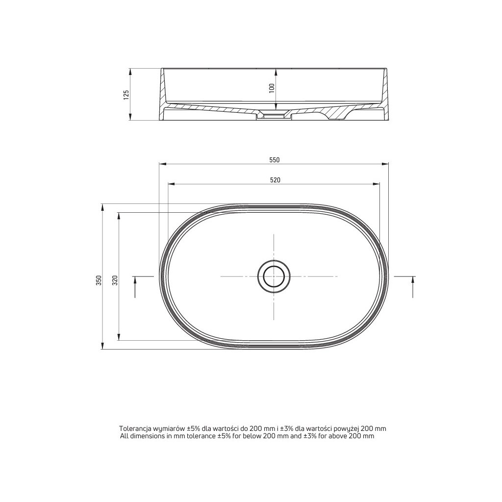 Oválny, moderný tvar s čistým minimalistickým dizajnom