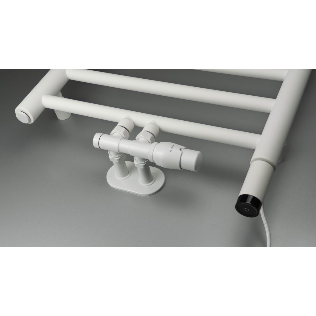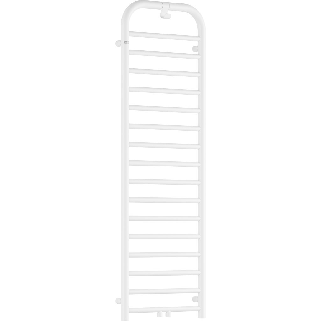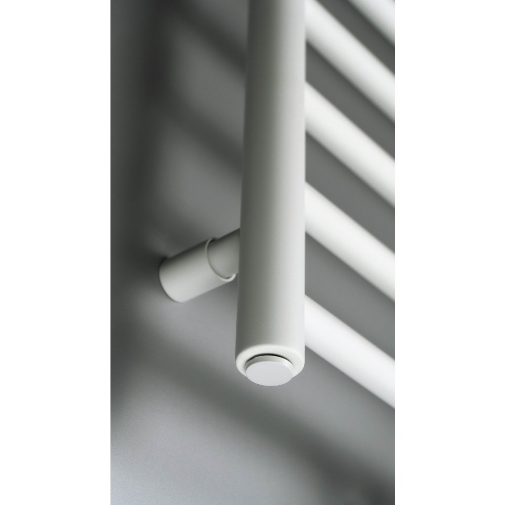 Štýlový kúpeľňový radiátor v matnej bielej farbe s rozmermi 1570x500 sa vyznačuje jemnými líniami a kvalitnou povrchovou úpravou. Je vybavená funkčným háčikom na uterák alebo župan. Ide o hybridný model: vodno-elektrický, umožňujúci inštaláciu voliteľného 600W ohrievača, ktorý zabezpečí dodatočný ohrev alebo sušenie uterákov mimo vykurovacej sezóny. Pre radiátor je potrebné zakúpiť ventil. Voliteľný ohrievač aj potrebný ventil sú k dispozícii v rovnakej farbe ako radiátor.