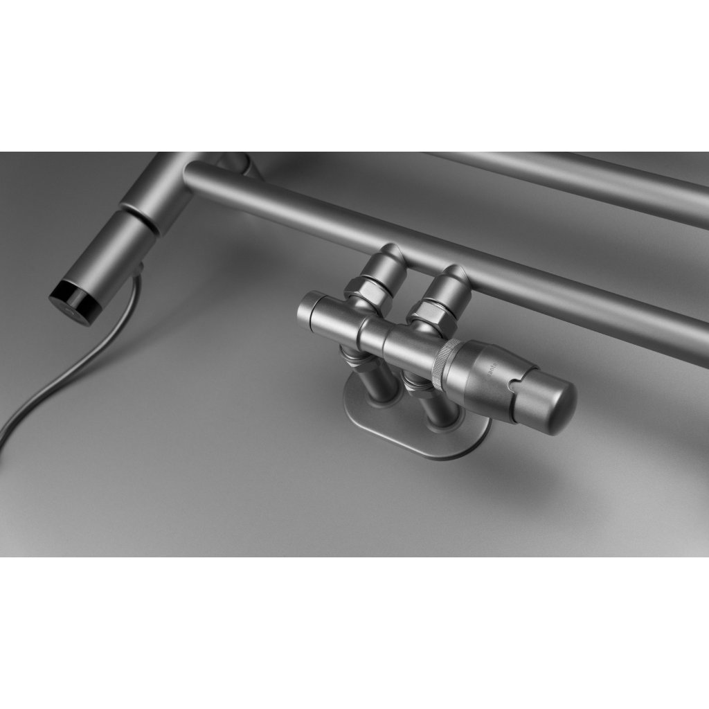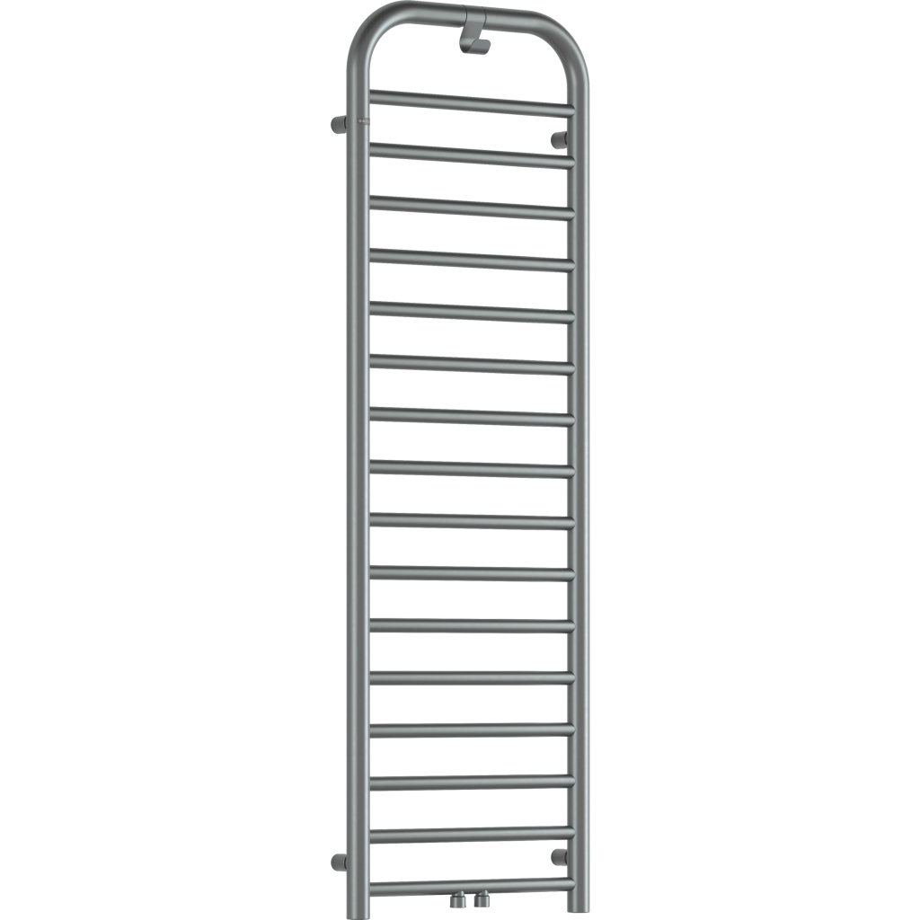 Funkčný kúpeľňový radiátor s rozmermi 1570x500 sa vyznačuje zaoblenými tvarmi a kvalitnou povrchovou úpravou z matnej ocele. Je vybavená praktickým háčikom na uterák alebo župan. Ide o hybridný model: vodno-elektrický s možnosťou pridania voliteľného 600W ohrievača, ktorý zabezpečí dodatočný ohrev alebo sušenie uterákov mimo vykurovacej sezóny. Pre radiátor je potrebné zakúpiť ventil. Voliteľný ohrievač aj potrebný ventil sú k dispozícii v rovnakej farbe ako radiátor.
