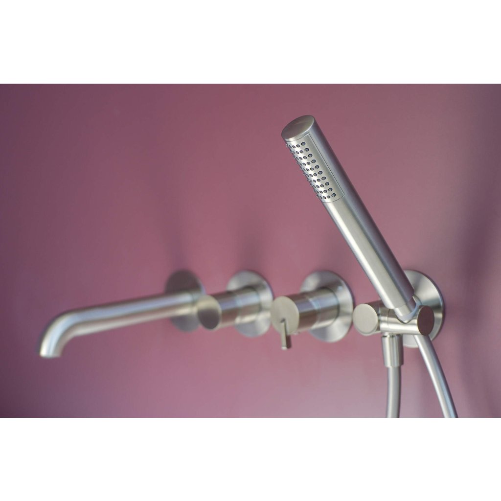 Deante Silia, 4-otvorová vaňová batéria pod omietku so sprchovou súpravou, oceľová, DEA-BQS_F18P