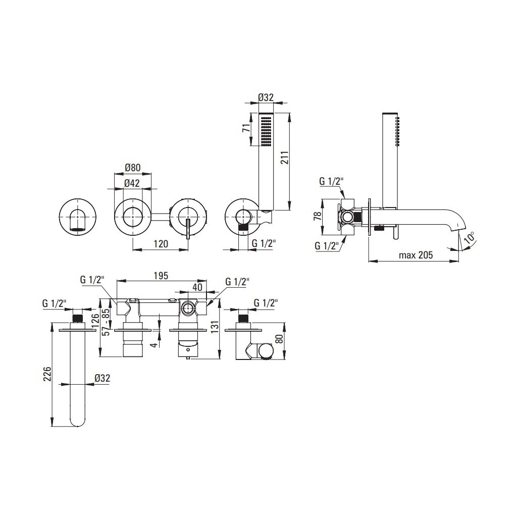 - Typ: 4-otvorová vaňová batéria pod omietku