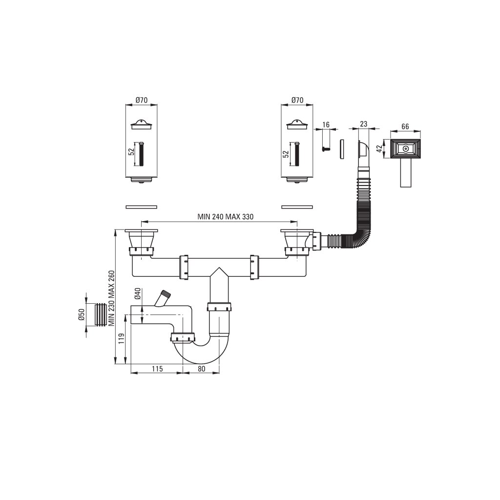 - Typ: nerezový drez na dosku 2-komorový + sifón