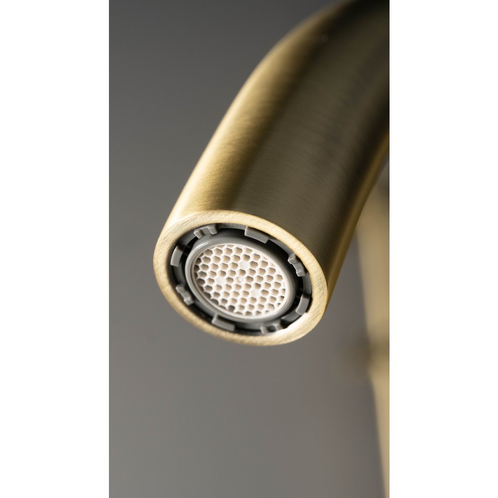 Stojanková umývadlová batéria zo série Temisto Nero v mosadznej farbe, rovnako ako ostatné produkty z tejto jedinečnej kolekcie, je dokonalým príkladom spojenia štýlu, moderných technológií a dizajnu. Nadčasové tvary tejto dvojrúčkovej umývadlovej batérie na jednej strane odkazujú na interiéry z dávnych čias a na druhej strane sa budú skvele hodiť do kúpeľní zariadených v modernom štýle. Prezentovaná umývadlová batéria so zaobleným vysokým výtokom a štylizovanými gombíkmi na teplú a studenú vodu je navyše vybavená pohyblivým perlátorom, ktorý umožňuje nasmerovať vodu zvoleným smerom. Prevzdušňovač prevzdušňuje kvapky a zväčšuje prúd, čo znižuje spotrebu. Keramická hlavica s uhlom otáčania 90° umožňuje rýchle nastavenie požadovanej teploty vody. Batéria má čierny, veľmi atraktívny, saténový povrch typický pre líniu Nero, ktorý je nielen ideálny pre minimalistický a industriálny štýl, ale vďaka inovatívnej technológii povrchovej úpravy je aj mimoriadne odolný. Kolekcia Temisto je dokonalou ukážkou retro štýlu v modernom prevedení, o čom svedčia aj mnohé ocenenia ako Must Have 2020, "Kúpeľňa" - voľba roka 2020 alebo Top Design 2020.