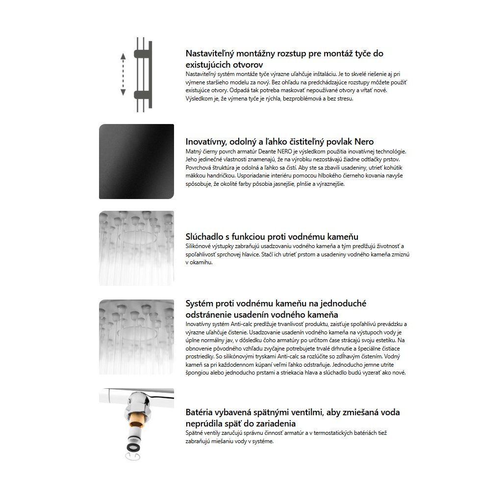 Dodatočné vlastnosti: | nastaviteľný uhol sprchovej hlavice |