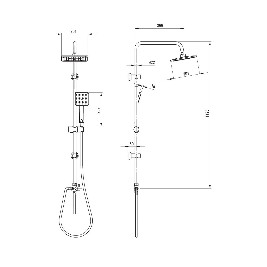 - Typ: nástenná sprchová batéria + sprchový stĺp s ručnou a hlavovou sprchou