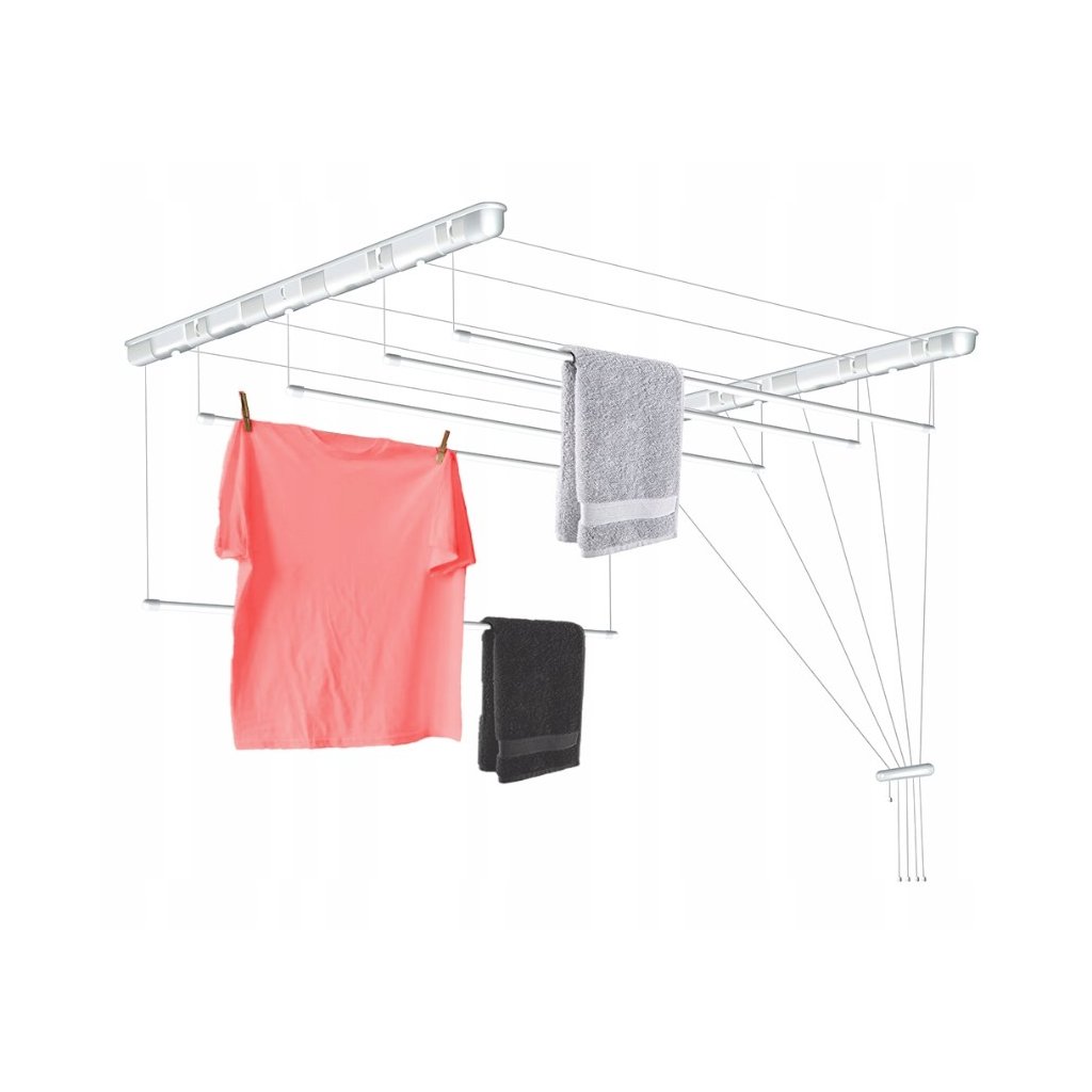 Hľadáte závesný vešiak na bielizeň, ktorý vám ušetrí veľa miesta? Produkt, ktorý bude fungovať v interiéri aj exteriéri? Pozrite si náš stropný 5 radový sušiak bielizne. S naším stropným sušiakom môžete vytvoriť miesto na sušenie bielizne bez toho, aby zaberala príliš veľa miesta. Tento výrobok je možné inštalovať v miestnosti do výšky 3 metrov. Vhodné na sušenie bielizne v interiéri aj exteriéri. Má vynikajúcu odolnosť voči poveternostným vplyvom a vlhkosti, takže sa nemusíte obávať korózie.