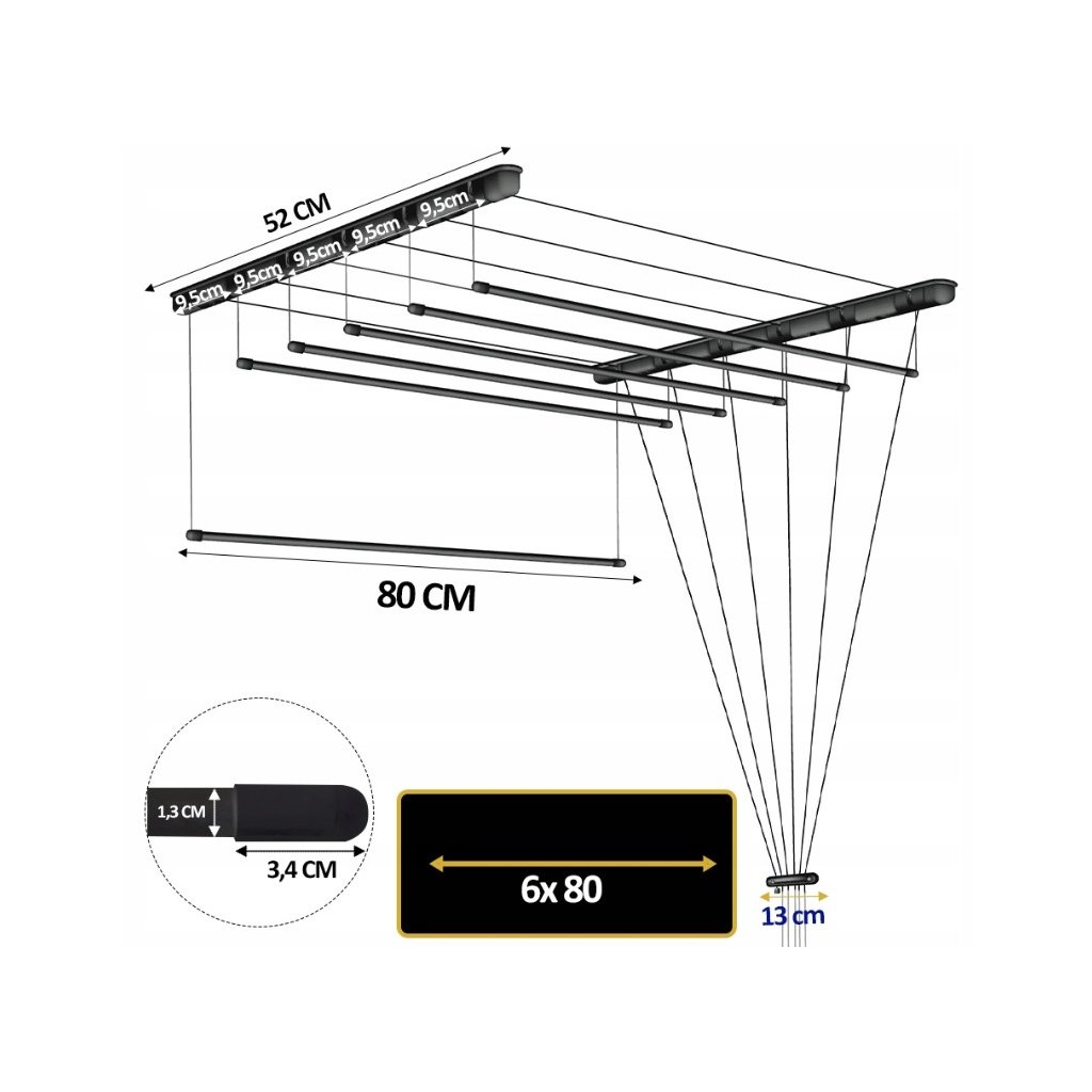 Erga, stropný vešiak na sušenie bielizne 6x80 cm, čierna, ERG-SEP-10SUSSU6PCZ80